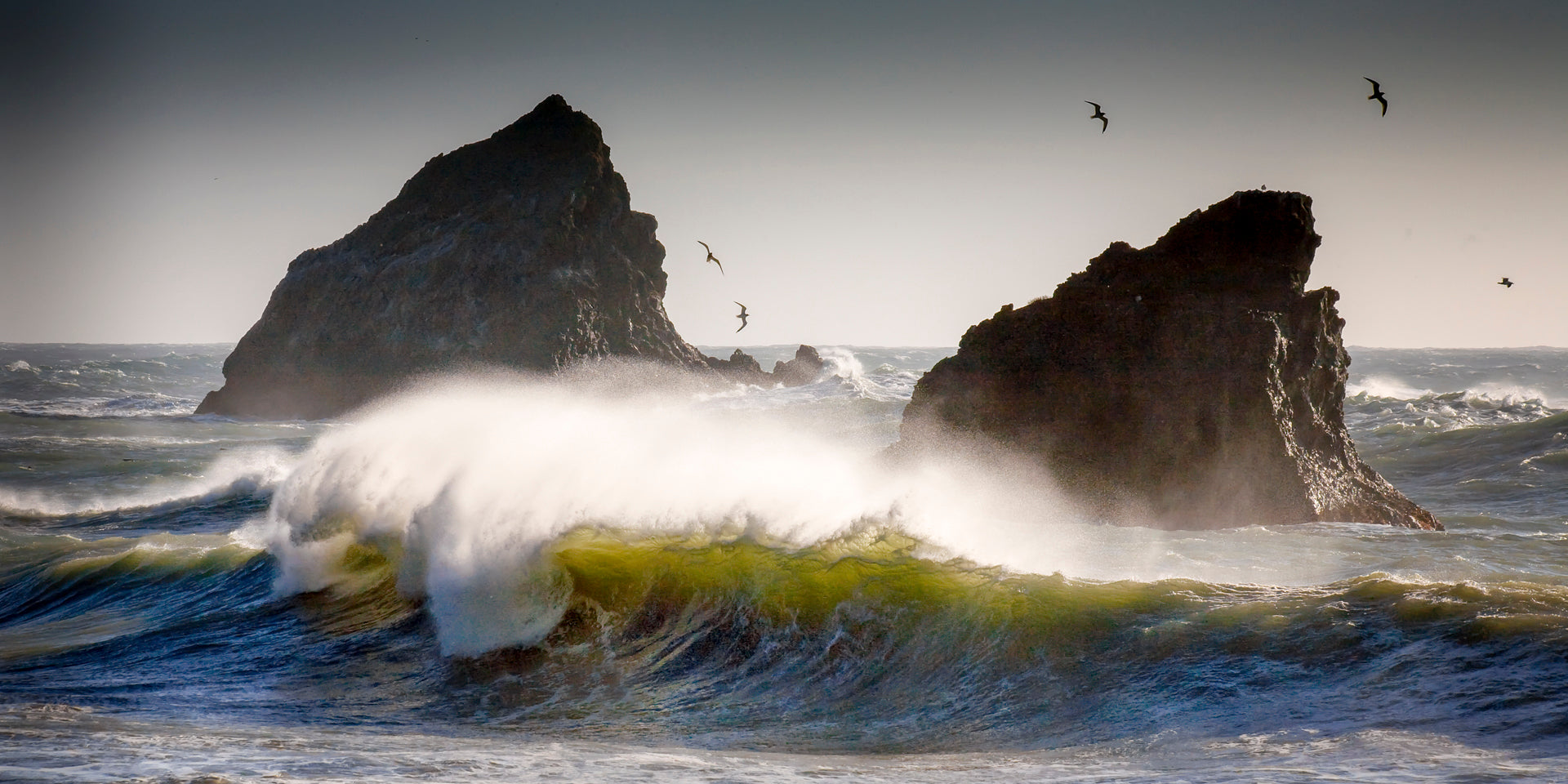 The dance of wind, waves and light at Navarro Beach on the Mendocino Coast.