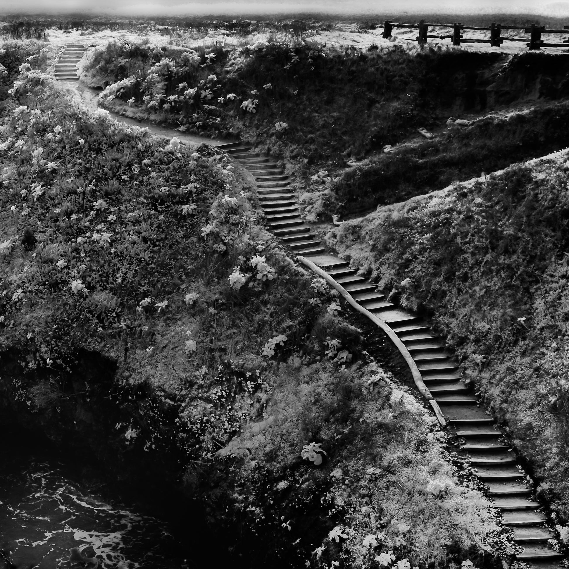 This black & white infrared image captures the irregularity of the landscape and highlights the steepness of the terrain, and it's invitation to ascend.