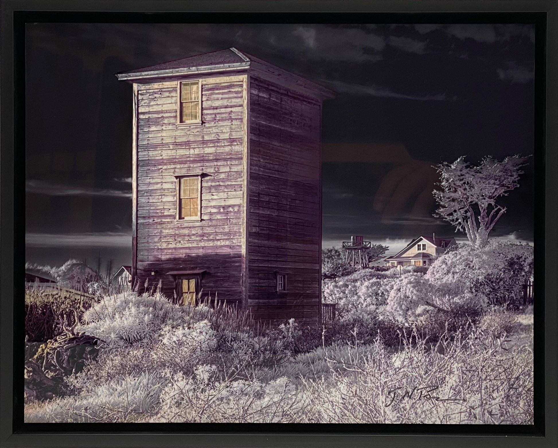 Infrared photography captures things in such an odd and surreal way, it's perfect for the tower house at the end of Mendocino's Main Street. This iconic three story house was built on the footprint of an old water tower, water towers which was a common sight around the the village a hundred years ago. If you look carefully, just to the right and behind the new tower house is an old water tower in the distance which might still be in use today.